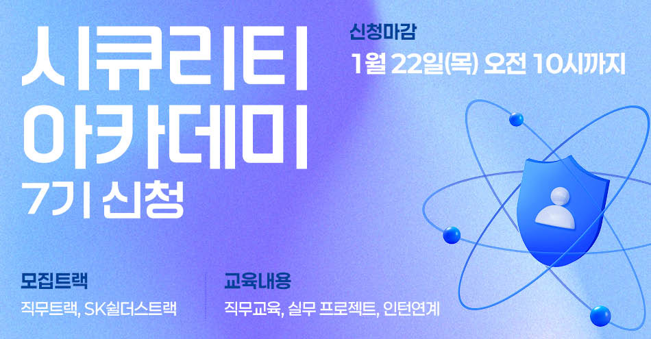 [2025-06-09] [마감] 시큐리티아카데미 6기 기업형 SK쉴더스 트랙 교육생 모집(~7.6)