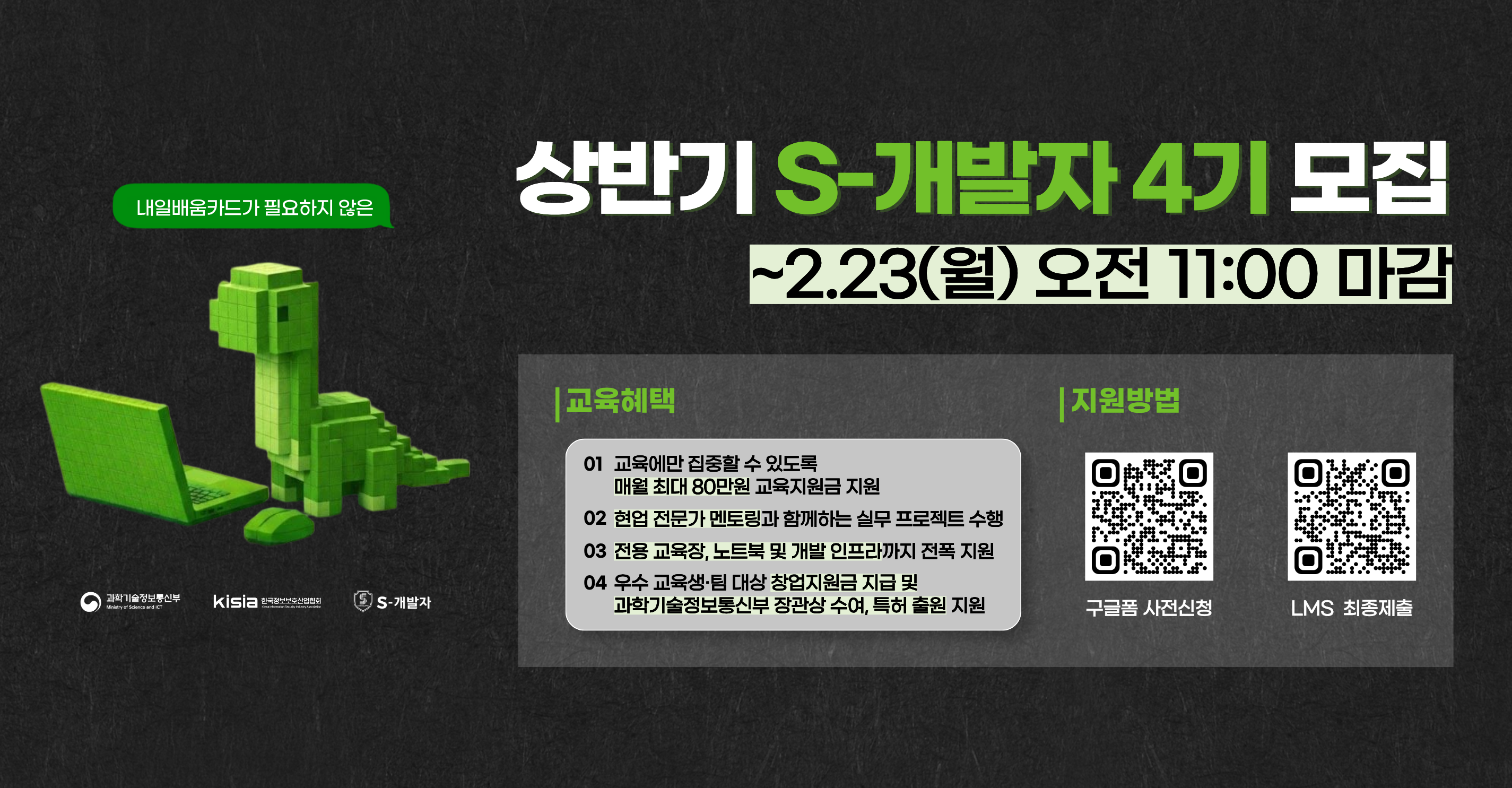 [2026-01-14] [KISIA] 2026 상반기 S-개발자 4기 교육생 모집(~2.23(월), 오전 11시까지)