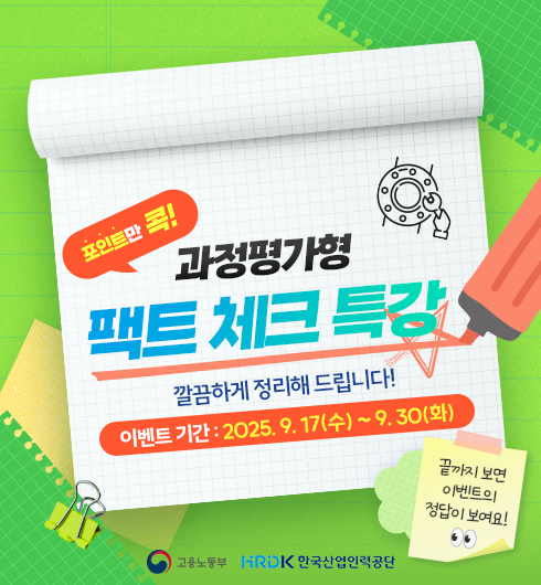 고용노동부와 한국산업인력공단은 산업현장의 직무 중심으로 직업 교육훈련과 자격간 유기적 연계를 강화하고 현장 맞춤형 우수 기술인재 배출을 위해 '과정평가형 국가기술자격'을 도입했습니다. 제도 관련하여 아래와 같이 안내드리오니, 많은 관심 바랍니다.