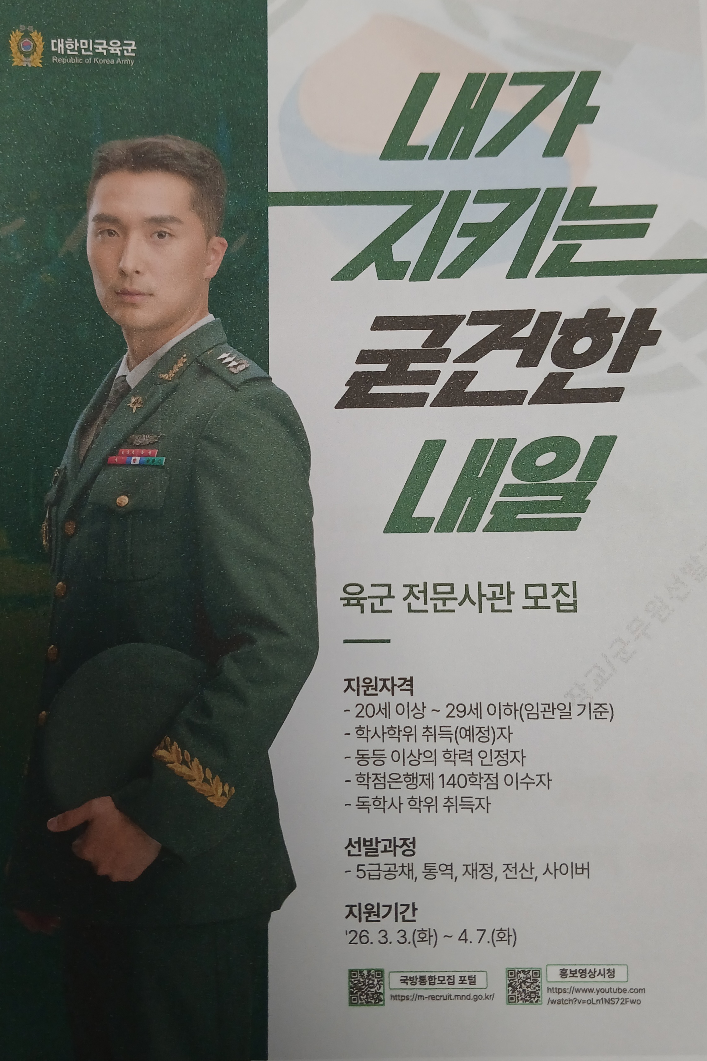 육군본부에서는 2026년도 전반기 전산, 사이버사관을 다음과 같이 모집하오니,