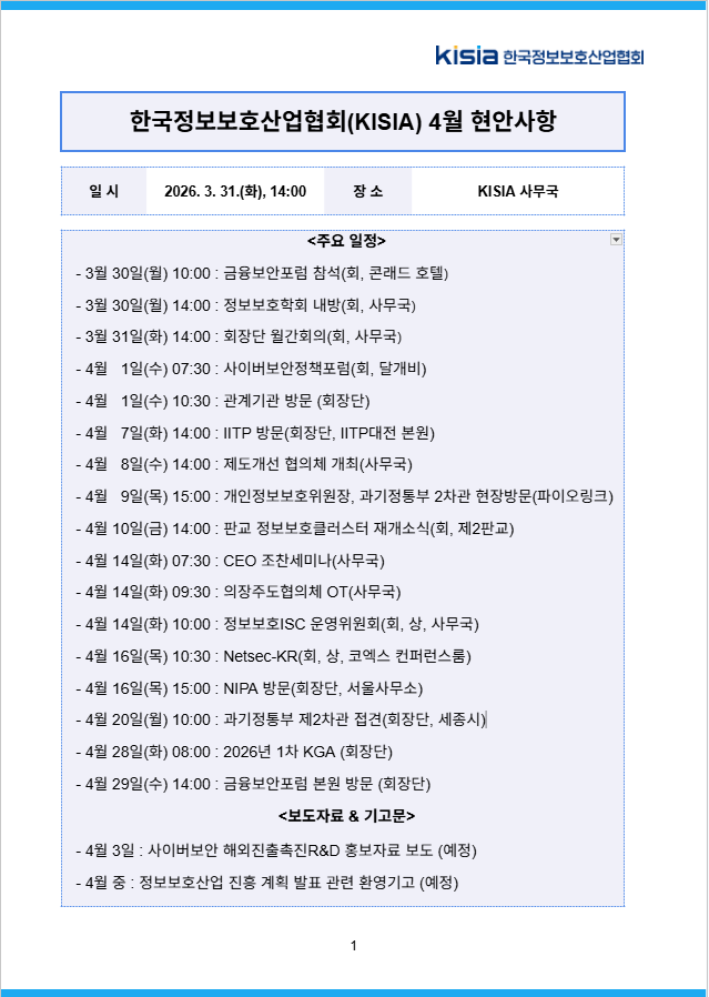 2026년 4월 한국정보보호산업협회 현안사항