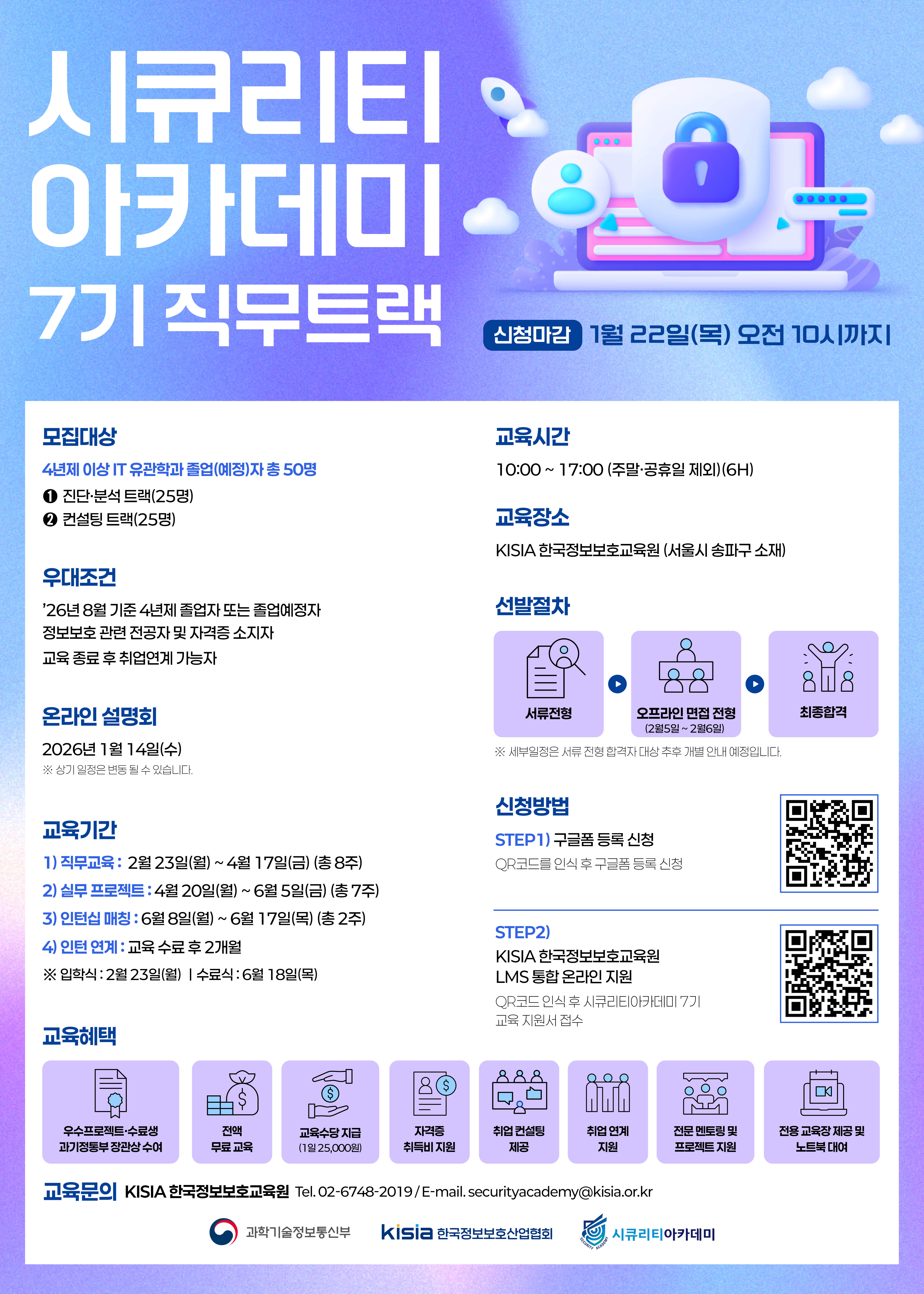 - 과학기술정보통신부가 주최하고, 한국정보보호산업협회가 주관하는 교육사업