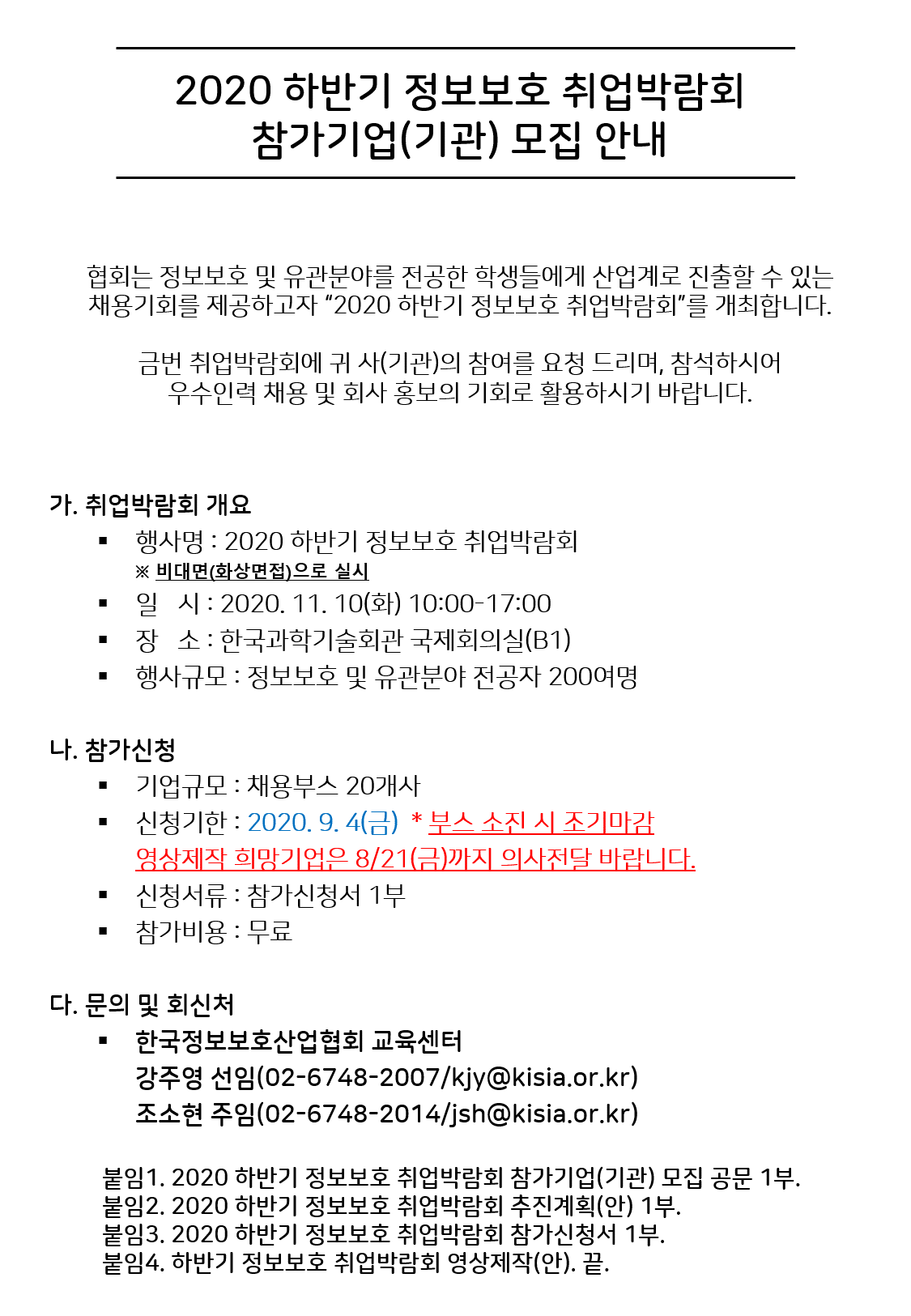 [다운로드 : 붙임1.+2020+하반기+정보보호+취업박람회+참가기업(기관)+모집+공문.pdf]