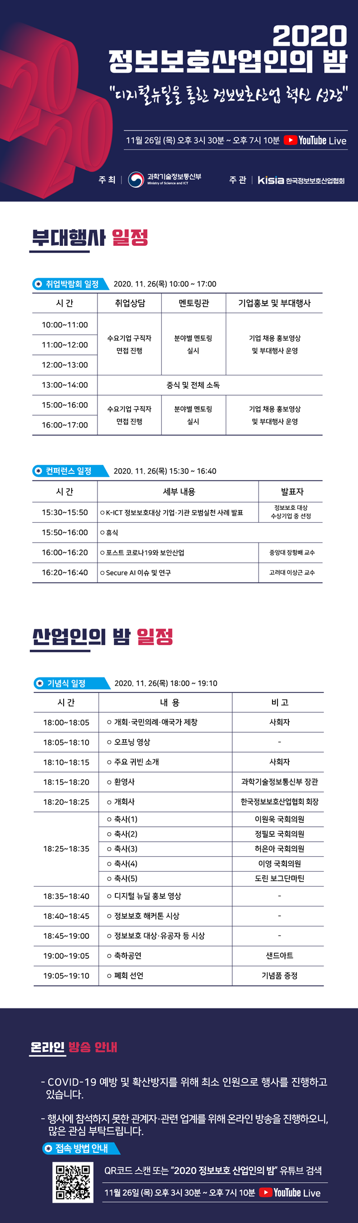 [KISIA] 2020 정보보호산업인의 밤 온라인 방송 안내(11.26)