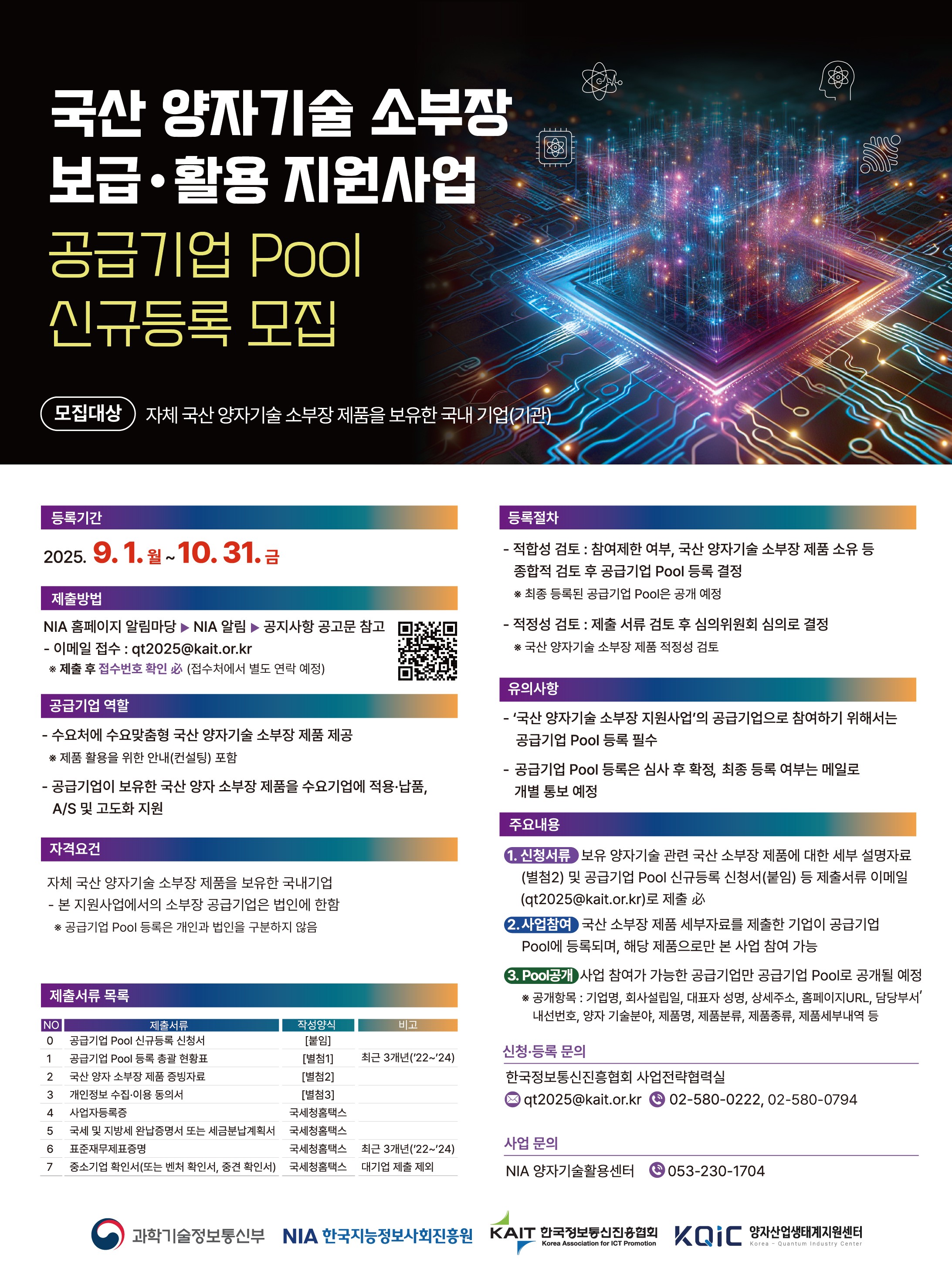 [한국정보통신진흥협회] 국산 양자기술 소부장 보급활용 지원사업 기업 모집 안내(~10. 15.(수))