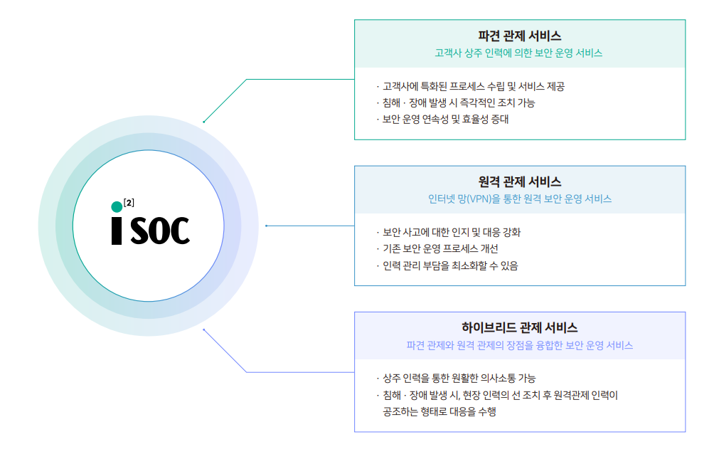 |  | 보안관제(파견) 다양한 사업의 경험과 표준화된 방법론을 통해 고객사에 최적화된 맞춤형 보안 서비스 제공 | |||
