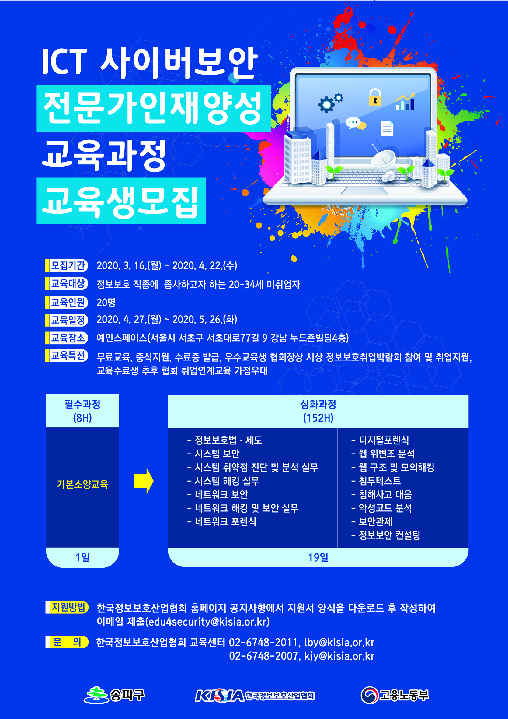 [마감] ICT사이버보안전문가인재양성과정 교육생 모집(~4/22)