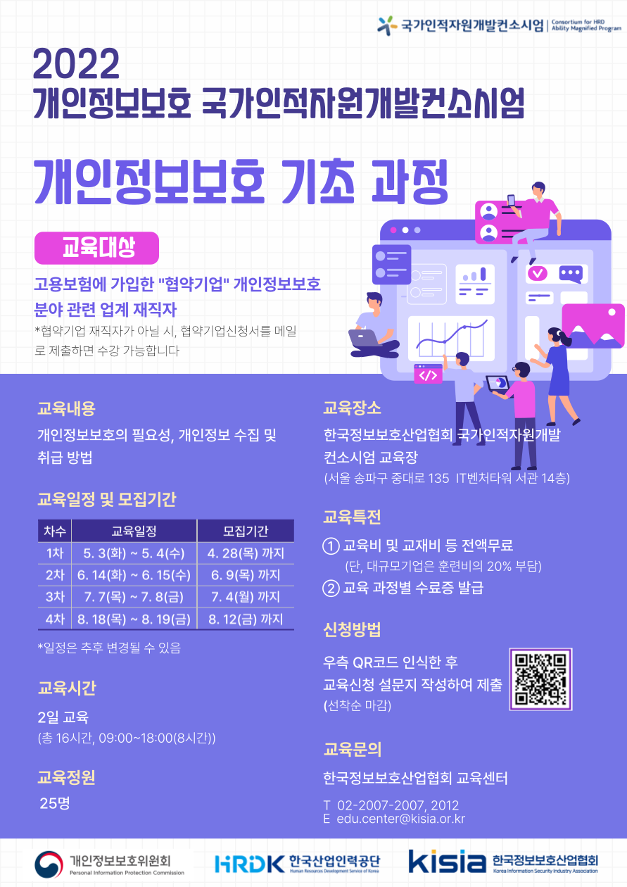 개인정보보호 기초 과정 4차 교육생을 8월 17일(수)까지 모집합니다.