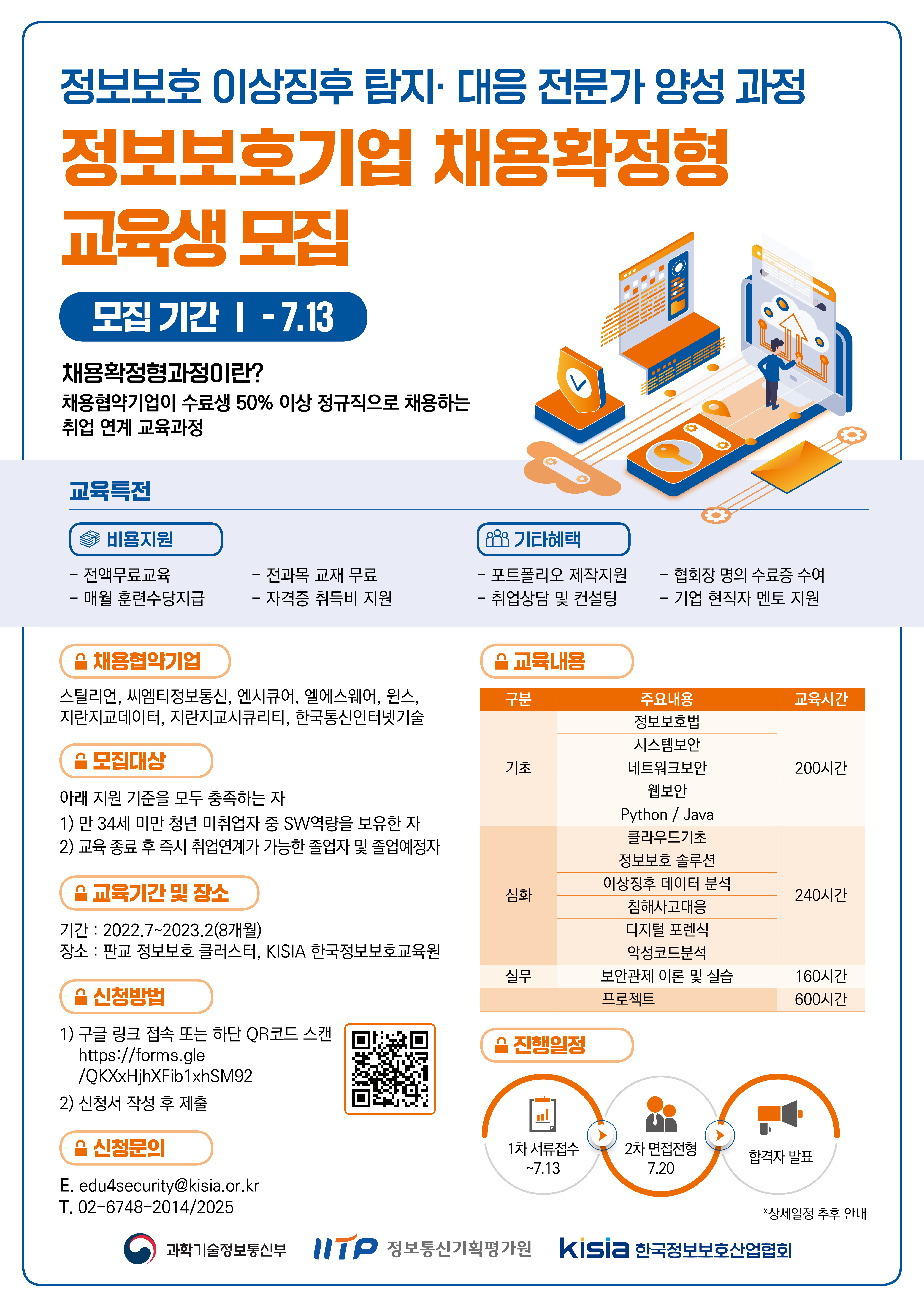[정보보호 이상징후 탐지· 대응 전문가 양성 과정]기업멤버십 SW캠프 정보보호기업 채용확정형 교육생 모집