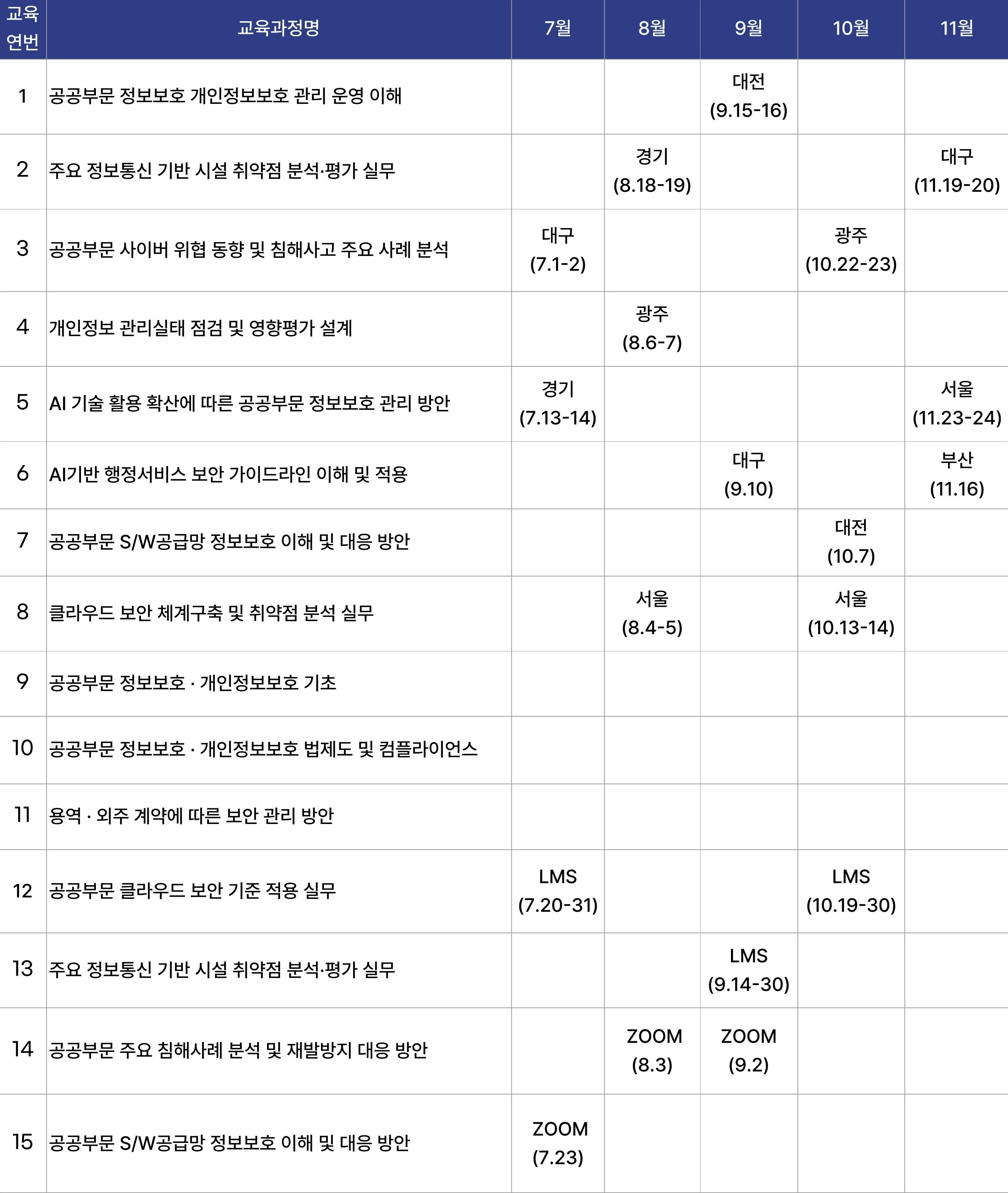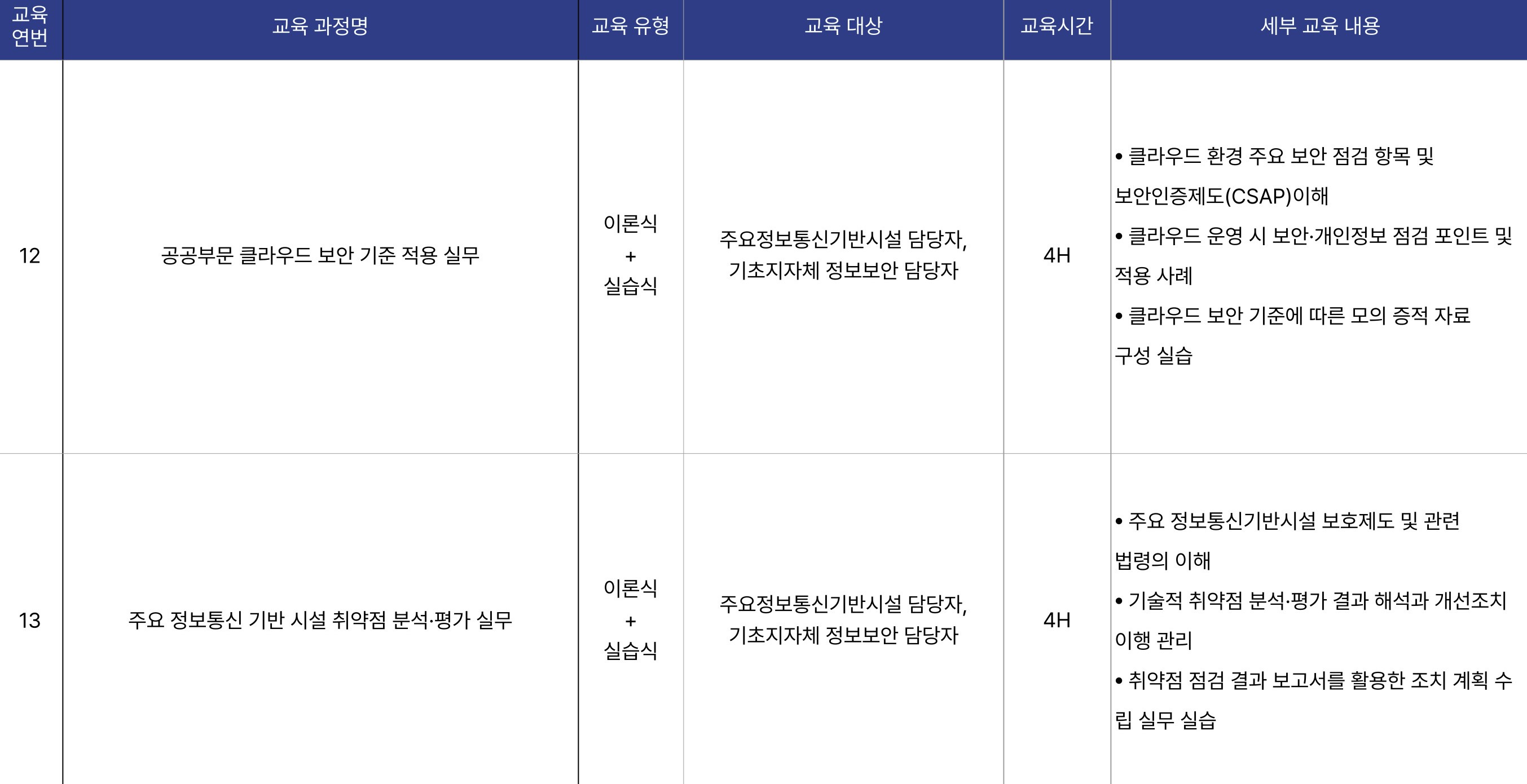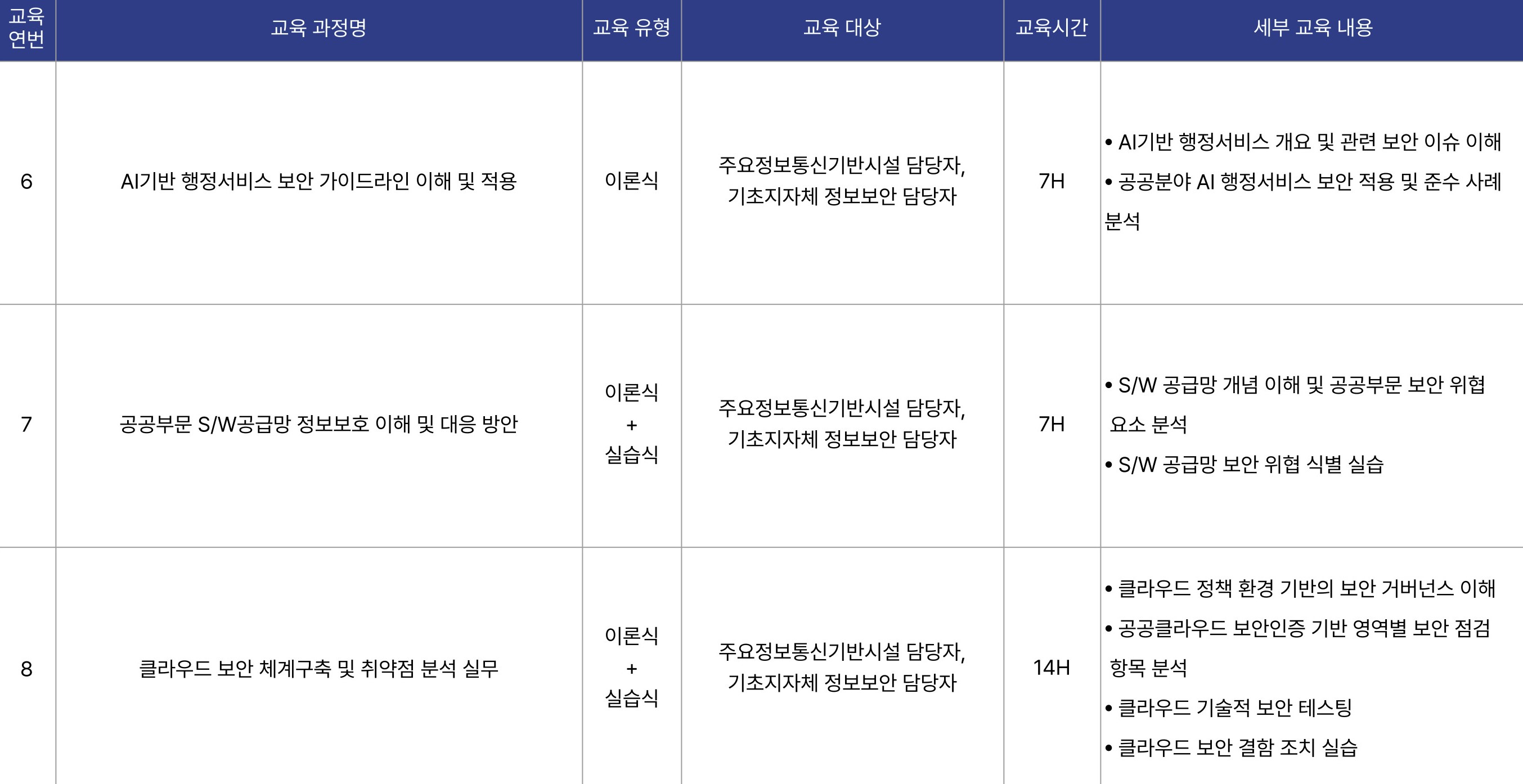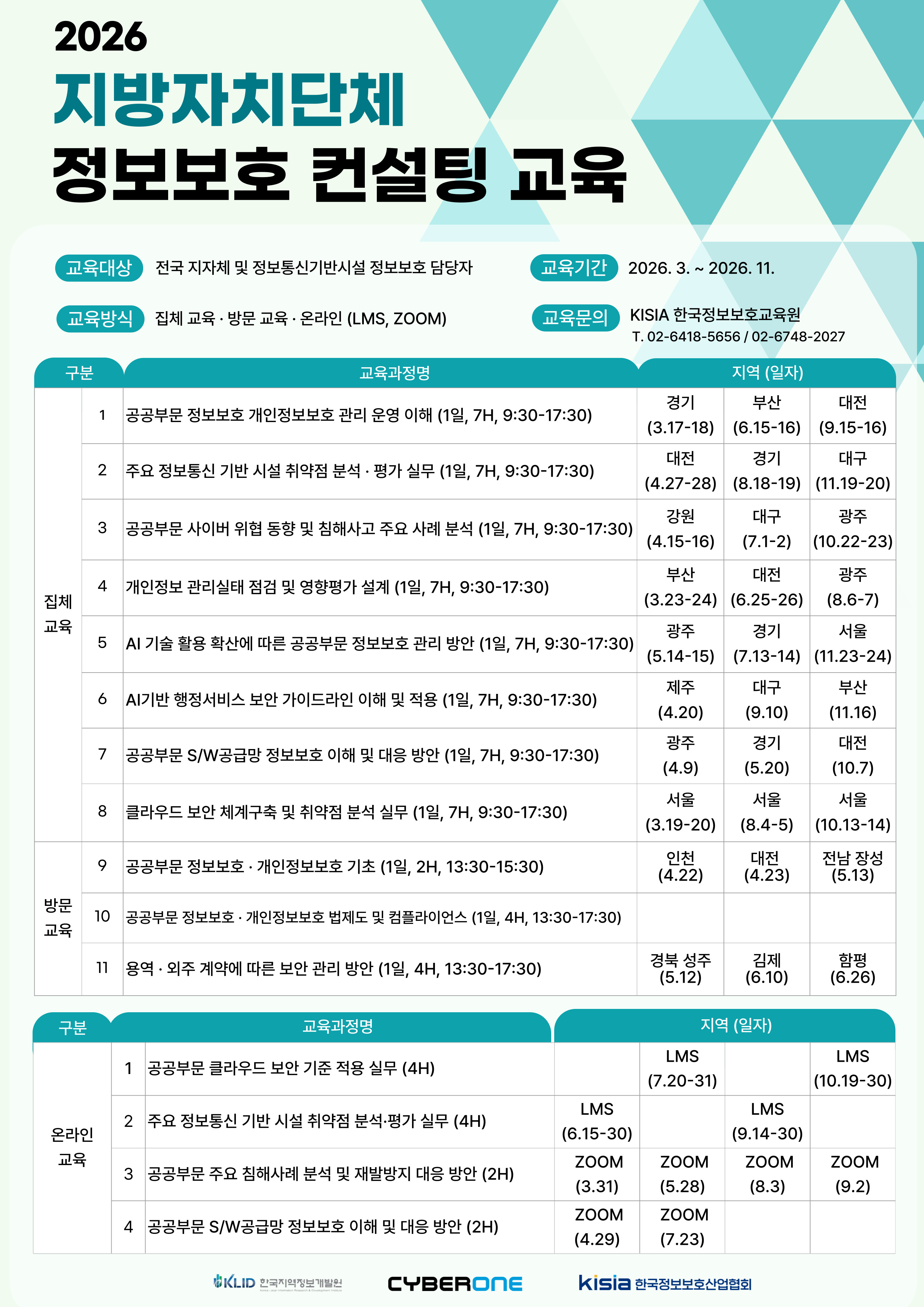 ⦁ (주요 내용) 2026년 지자체 정보통신기반시설 정보보호 컨설팅 사업과 연계한 지자체/공공기관 대상 정보보호 과정 개발 및 교육 운영