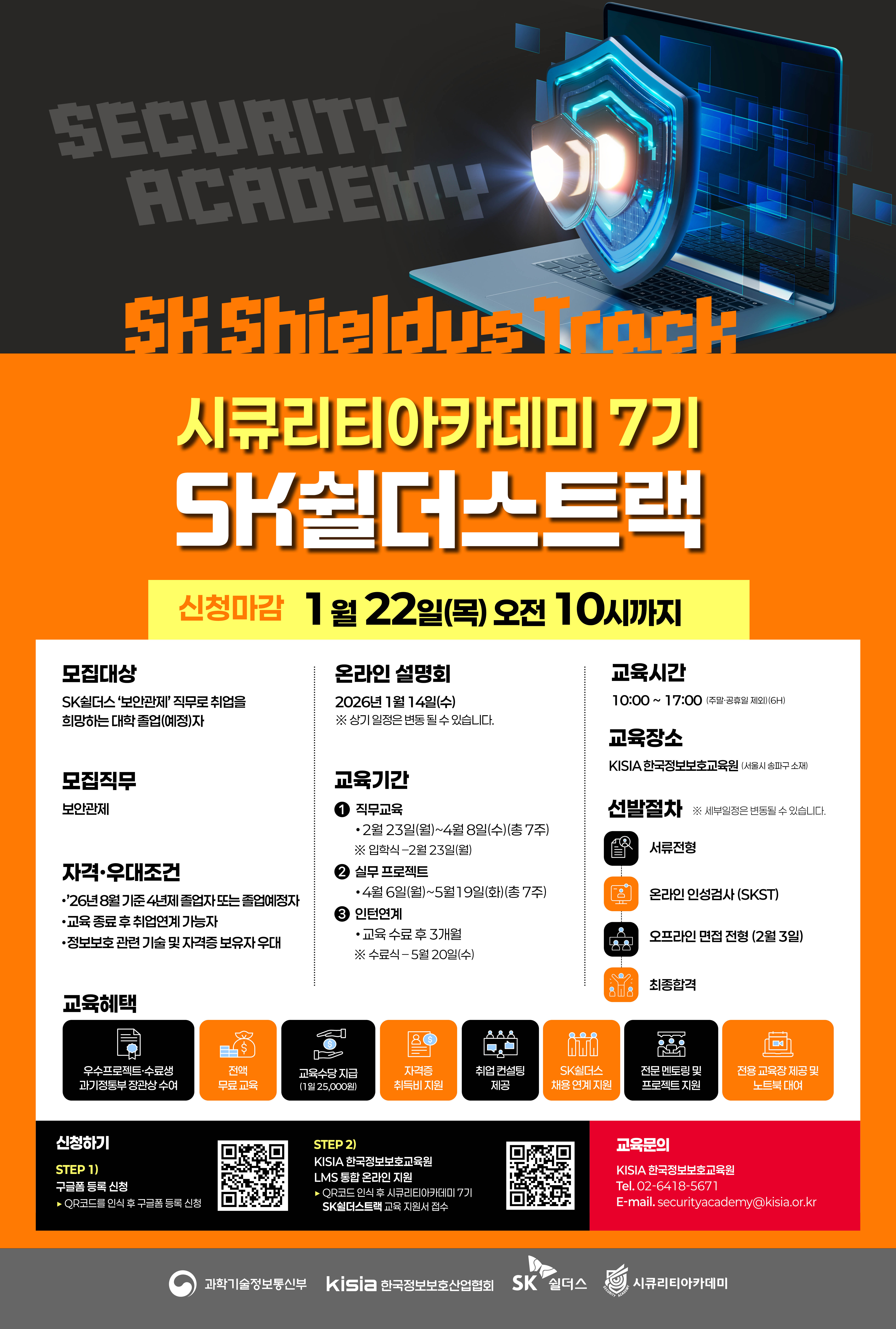 7기 SK쉴더스트랙 포스터 (신청마감 : 1월 22일(목) 오전 10시까지)